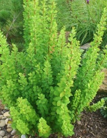 Саженцы кустарника барбариса Пау вау (Powwow) – растение колонновидной формы, вырастающее до 1,5 м в высоту и 50 см в ширину. Листья изменяют окраску в соответствии с сезоном: молодые побеги лимонно-желтого оттенка, затем они зеленеют и осенью становятся желто-красными. Цветки на кустарнике маленькие желтые, а плоды яркие красные. Во время роста из правильной вертикальной формы в стороны могут выпадать ветки. Их легко вправить на место или обрезать при помощи секатора. На протяжении последних лет – это самое востребованное растение, удовлетворяющее вкусы самых строгих садоводов по всей Европе. Его применяют для живых изгородей и сложных композиций, в создании альпийских горок.