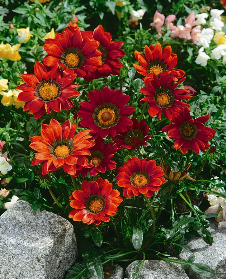 Газания New Day Bronze Shades - это великолепное растение с красно-оранжевыми цветками, которое порадует вас своей красотой и изяществом. Сорт этого растения отличается компактным размером до 25 см в высоту и 7 см в диаметре, что делает его идеальным выбором для одиночных посадок. Листья газании имеют яркий зеленый оттенок, создавая прекрасный контраст с яркими цветами.