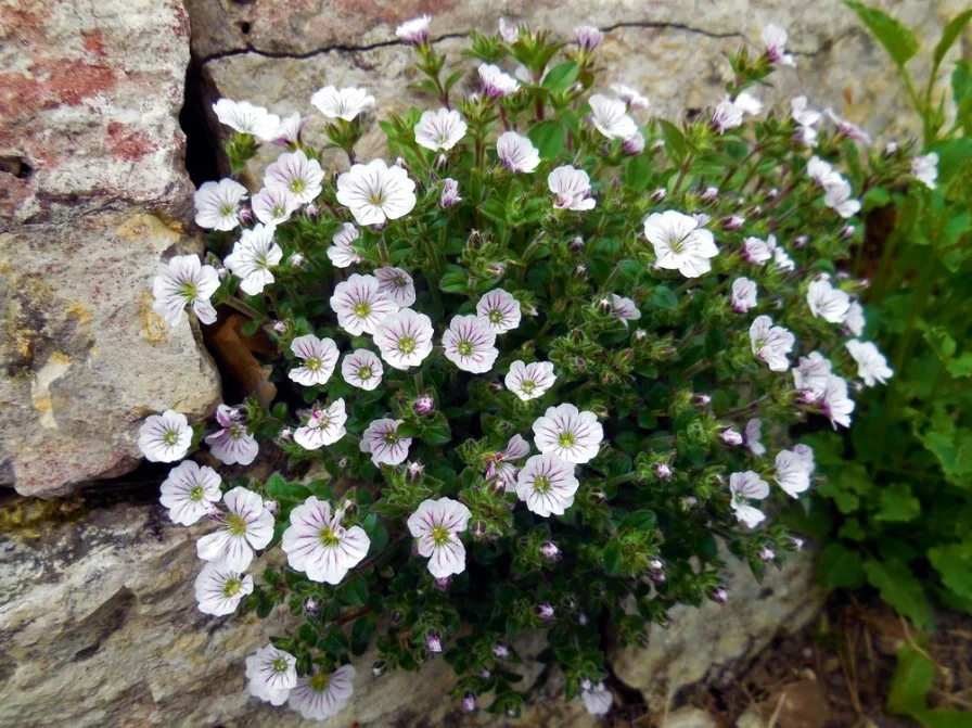 Рассада гипсофилы ясколковидной (Gypsofila cerastoides) имеет небольшие листья 6-15 мм яйцевидной формы. В высоту вырастает около 10-15 см. Цветки в разветвленных округлых соцветиях. В начале мая зацветает и образует подушку цветов белого окраса. Достоинства гипсофилы ясколковидной: