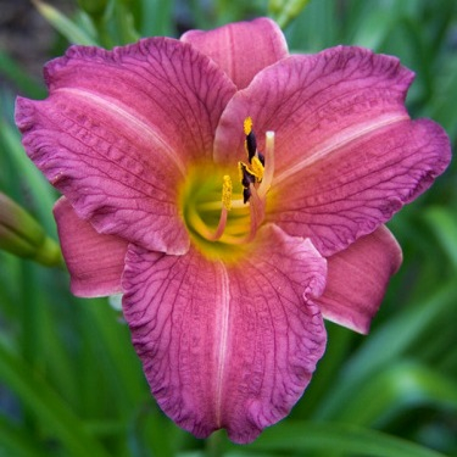 Лепестки с гофрированным краем имеют розовато-пурпурный оттенок с прожилками темно-фиолетового цвета по всей поверхности. Горлышко лилейника Пурпл Де Оро золотистое и как бы подсвечивает бутон изнутри. Семена представленного растения неплохо сохраняются до весны, что позволяет размножить рассаду понравившегося сорта.