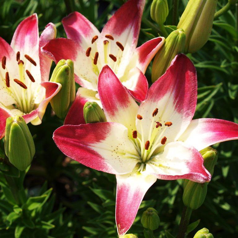 Луковицы лилии Lollypop абсолютно неприхотливы в уходе и подходят для выращивания даже малоопытному садоводу. Высаживают растение на хорошо освещенных участках в лунки на расстоянии до 25 см. Культура любит питательную рыхлую почву, хорошо зимует без укрытия. Вырастает лилия Lollypop в высоту до 120 см. Цветки крупные, чашевидные, диаметром до 15-20 см. Лепестки двухцветные: серединка белая, а кончики ярко-малиновые. Особенность сорта – практически полное отсутствие аромата. Растение используют для цветников и выращивания на срез.