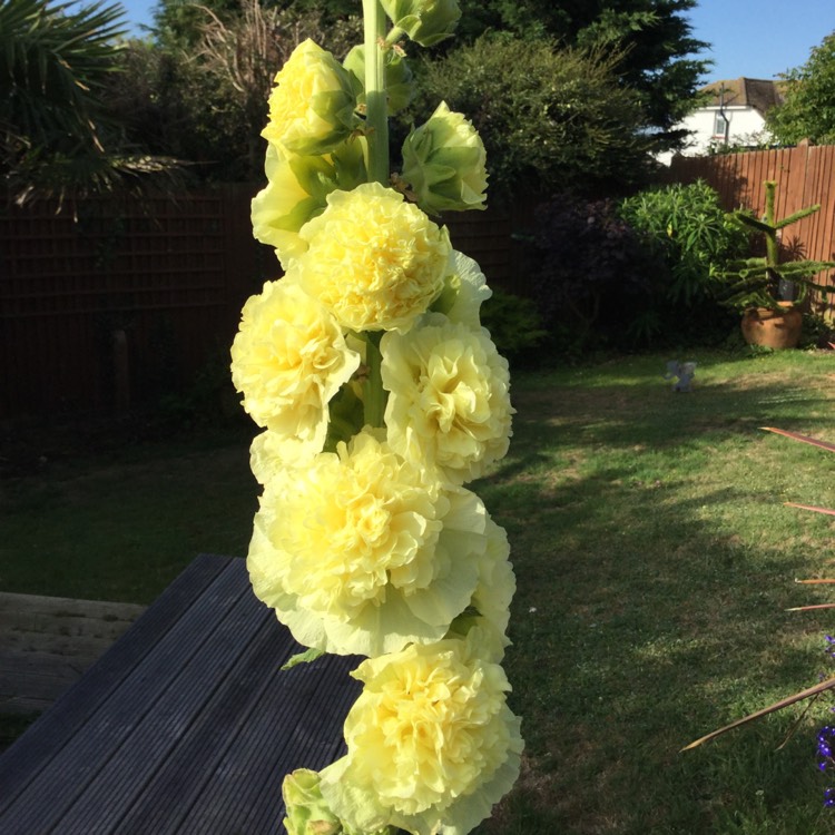 Рассада мальвы Чатерс Дабл Еллоу (Chater's Double Yellow) имеет крупные стебли, которые в период цветения обильно покрываются цветением. В высоту вырастает около 100-150 см. Листва зеленого окраса имеет лопастную форму и укрыта мелкими волосинками. Цветет в августе-сентябре махровыми, желтыми цветами около 13 см в диаметре. Плюсы мальвы Чатерс Дабл Еллоу: