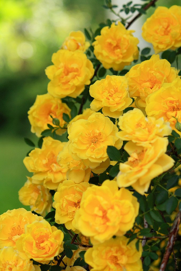 Саженцы розы плетистой Голден Парфюм (Golden Parfum) обрадуют любителей высокорослых ярких и ароматных роз. Растение обладает не только насыщенным запахом, но и поражает взгляд обильным цветением желтых махровых бутонов. Как правило, растение пускают обвивать арку, забор или стену беседки, создавая уютный романтический уголок на участке.