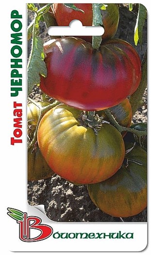 Семена томата "Черномор" (Chernomor) – это замечательный, высокоурожайный, экзотический по цвету плодов, салатный сорт. Растение может достигать до 2 метров в высоту, требует подвязки и обязательного пасынкования. Плоды получаются округлой формы. Они гладкие, темного бордово-коричневого цвета. Средняя масса достигает 300-400 грамм. Помидоры мясистые, сочные, сладкие и очень вкусные. Урожайность с одного куста до 4 кг. Характеризуется сорт превосходными вкусовыми качествами, мягким гармоничным вкусом и ароматом. Урожай особенно ценен в свежем виде.